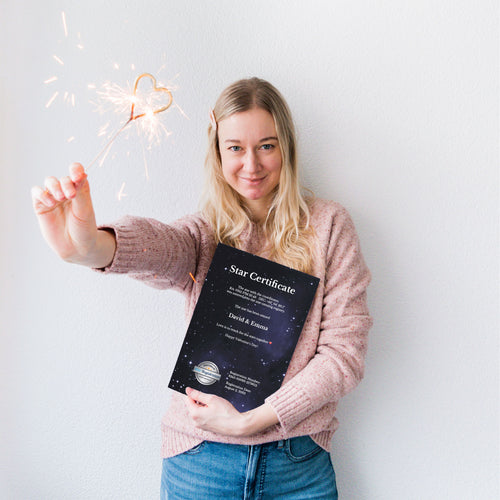 Naming a star is an excellent gift for any occasion. Due to our personalized gift certificates, you can adjust it to be a great fit, from birthdays to anniversary gifts. Most people name a star as a birthday gift, wedding gift, or Christmas gift. But also, on Valentine's Day, Mother's Day, and Anniversaries we get great feedback!